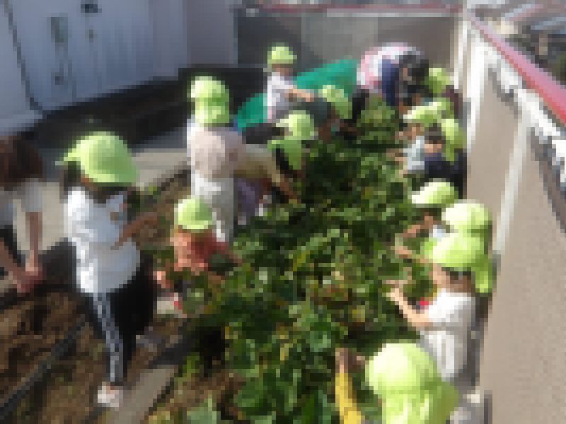 先週、屋上菜園で育ててきたさつまいもを掘り出しました。
