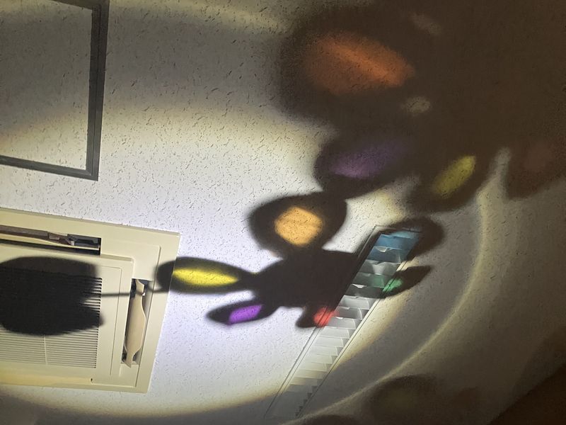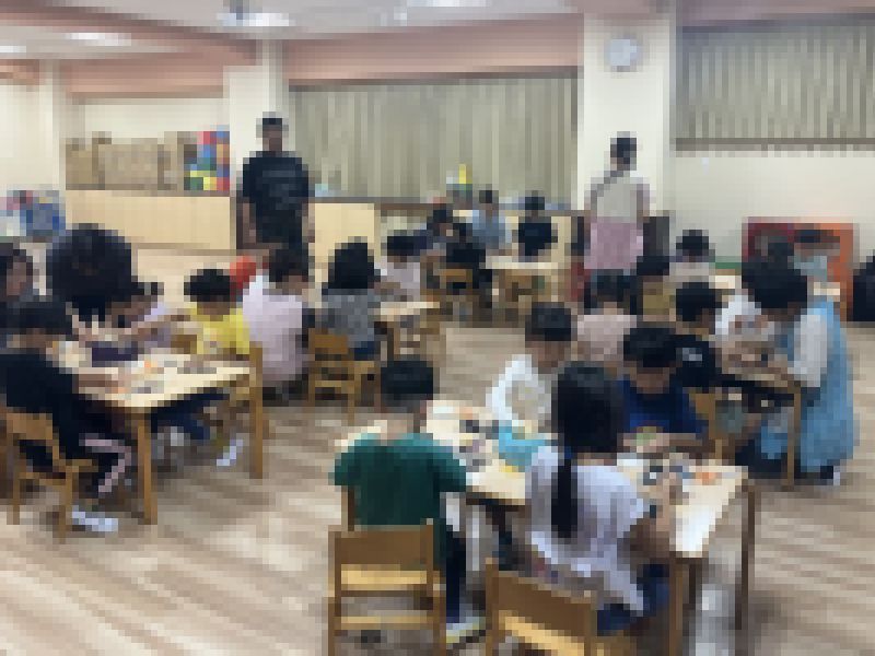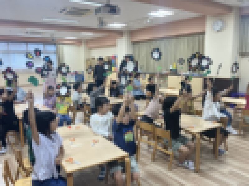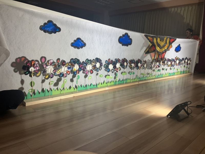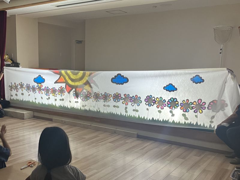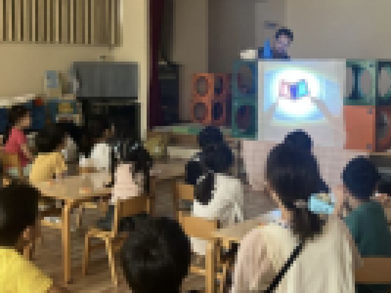 第2回すくわくワークショップ(5才児) 第2回のすくわくワークショップのテーマは「光と影」。 カラーセロハンを使って花を作り、暗闇の中で光を当ててみました。 影に色がついたり、光を当てる角度や距離によって大きさが変わったり、色が重なると違う色に見えたり・・・。 様々な発見と気づきのあった素敵な体験でした。 « おはなしの会がありました(3・4・5才児クラス)